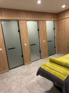Выезжаем на замер, предлагаем варианты компоновки и материалы.